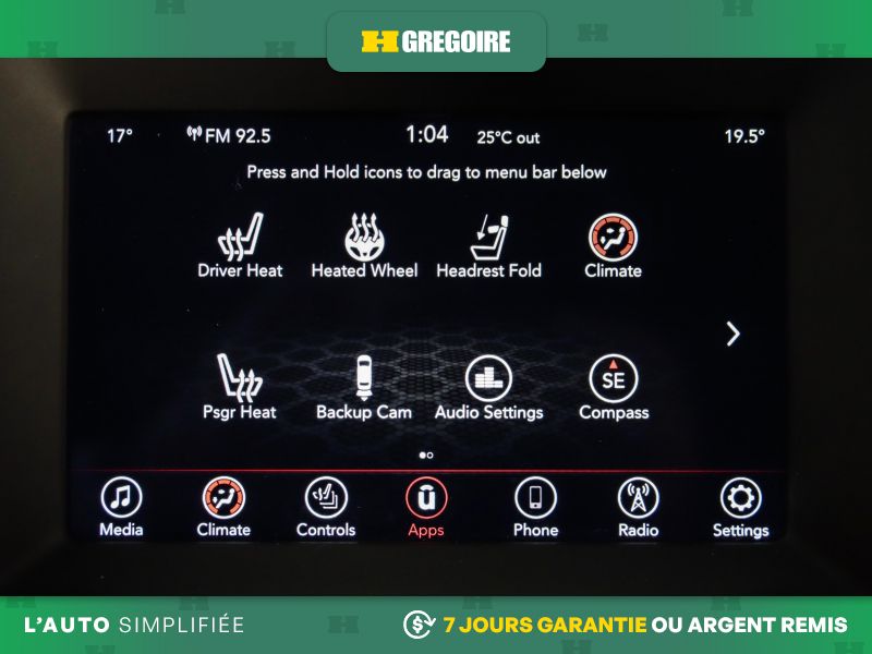 Radio avec recherche et balayage, montre, prise d'entrée audio auxiliaire, commandes au volant et commandes vocales