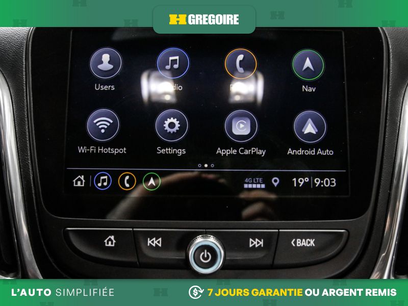 • Chevrolet 4G LTE et point d'accès sans fil intégré livrable pour un maximum de 7 appareils; comprend forfait de données d'essai de 3 Go ou d'une période d'un mois (selon le premier terme atteint) à partir de la date de livraison (Consultez le site onstar.ca pour obtenir les données cartographiques et connaître les restrictions et les détails liés au système. Les services et la connectivité varient selon le modèle, les conditions ainsi que les restrictions géographiques et techniques. Requiert services connectés actifs dans le véhicule et forfait de données. Les forfaits de données sont offerts par AT&T ou son fournisseur local. L'alimentation des accessoires doit être active pour utiliser le point d'accès sans fil.)