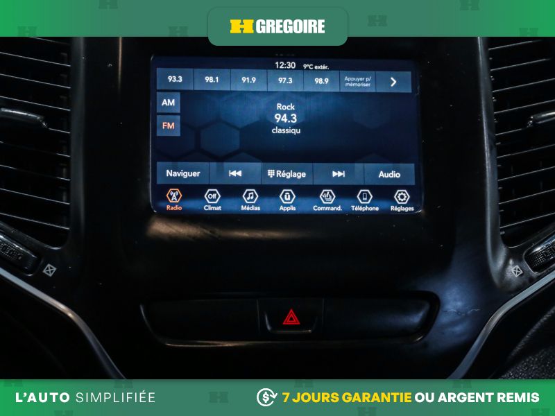 • Radio avec recherche et balayage, montre, volume asservi à la vitesse, prise d'entrée audio auxiliaire, commandes vocales, système de radiocommunication de données et commande de mémoire externe Uconnect