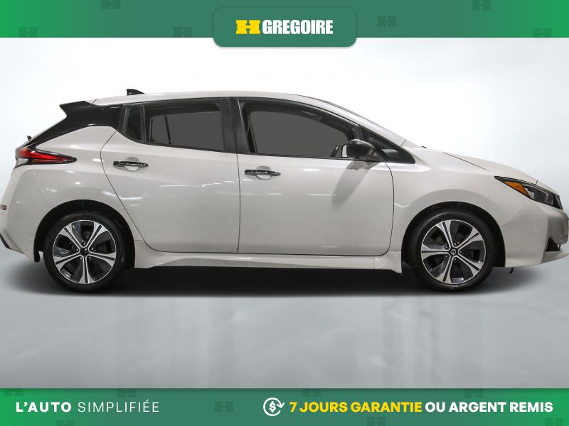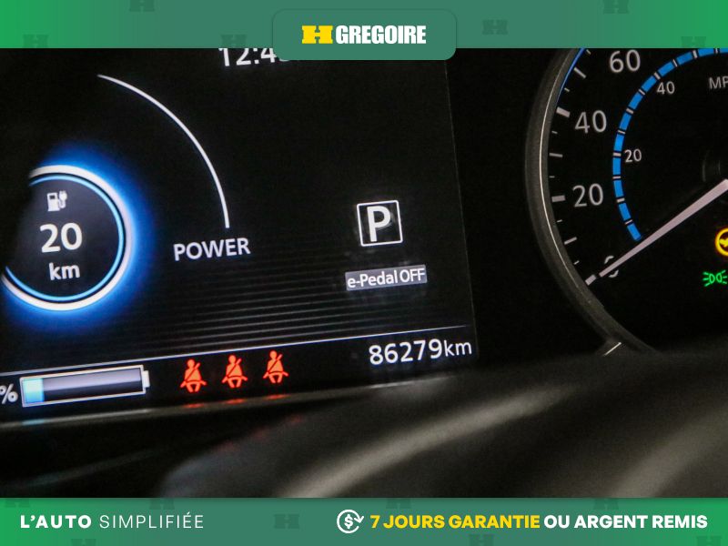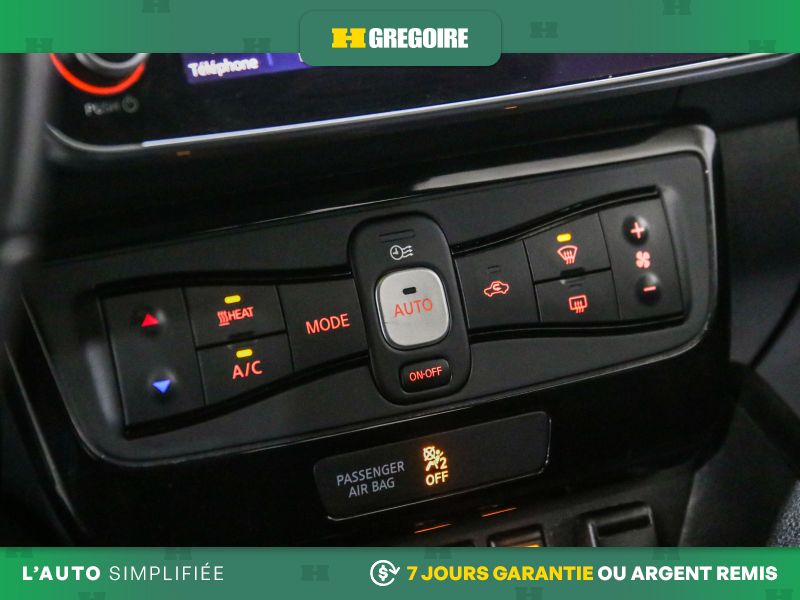 • Services NissanConnect EV alimentés par SiriusXM -comprend : témoin d'état de charge de la batterie, lancement de la séquence de charge, mise en marche du système CVCA, alerte automatique en cas d'impact, appels d'urgence et repérage du véhicule en cas de vol, les téléservices comprennent verrouillage et déverrouillage des portes, et fonction d'activation du klaxon et d'allumage des feux, alertes personnalisables dont l'alerte de zone limite, de service voiturier, de couvre-feu et de limite de vitesse