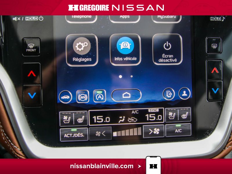 Services connectés Subaru STARLINK -comprend : système automatique avancé de notification de collision, assistance routière améliorée, service d'assistance en cas d'urgence (SOS), gestion améliorée des rendez-vous d'entretien, service de concierge pour la localisation de véhicule volé, antidémarreur de véhicule volé, notifications du système d'alarme antivol, alerte de territoire, alerte de couvre-feu, alerte de vitesse, bilan de santé du véhicule, information sur les points d'intérêt, activation à distance du klaxon et des phares, verrouillage et déverrouillage des portes à distance, démarrage et arrêt du véhicule à distance, commande de climatisation à distance, localisation du véhicule à distance et abonnement d'essai gratuit de 3 ans
